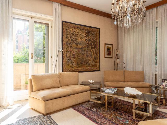 Proponiamo in vendita in curato stabile anni '70 signorile appartamento di 230 mq. ca sito al piano rialzato. L' unità è disposta su due livelli collegati anche internamente; al piano terreno: doppi ingressi, di cui uno living su soggiorno, sala da pranzo, tre camere, cucina abitabile, doppi servizi e ripostiglio. Al piano primo interrato: disimpegno, due ampie camere e bagno con antibagno. Ampia e godibile balconata circonda tutto il perimetro dell'appartamento con "zona terrazzo" fruibile comodamente collegata alla cucina.