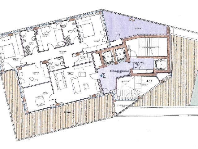 L'appartamento è composto da: ingresso, salone e cucina nella zona giorno ben disimpegnata dalla zona notte, costituita da tre camere, tre bagni e ripostiglio.