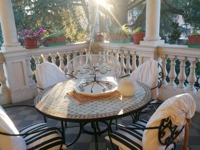 In prestigiosa villa bifamiliare di inizio 900, in ottimo stato di manutenzione, vendesi appartamento su due livelli: al piano primo: ingresso living su salone, ampia cucina abitabile, sala