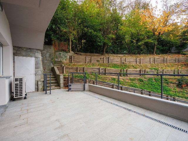 In un elegante edificio costruito nel 1962, riqualificato completamente e dotato di ascensore e giardino condominiale, proponiamo splendido appartamento posto al primo piano e composto da ingresso, luminosa zona giorno con grandi finestre con splendida vista sulla città e accesso al grande balcone, cucina dotata di tutti gli elettrodomestici, camera da letto matrimoniale con bagno en suite, seconda camera con accesso al terrazzo, bagno ospiti e lavanderia.