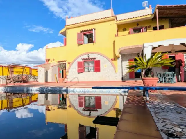 La proprietà, indipendente e caratterizzata da ampie aperture e affacci liberi, offre una superficie interna di circa 125 mq e un grande spazio esterno perfettamente attrezzato per momenti di relax e convivialità. La protagonista dell’area outdoor è senza dubbio la piscina privata (11,5 m x 5,5 m, profondità da 1 a 3 m), affiancata da una doccia in muratura, una cucina esterna in muratura con barbecue e zone dedicate al pranzo e al riposo all’aperto. Lo spazio antistante l’immobile consente inoltre di parcheggiare comodamente due auto.