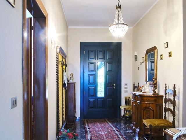 Al primo piano accoglie un luminoso ingresso che conduce a un grande soggiorno impreziosito da un elegante caminetto, sala da pranzo, cucina e zona notte, composta da quattro spaziose camere matrimoniali e un bagno padronale.
