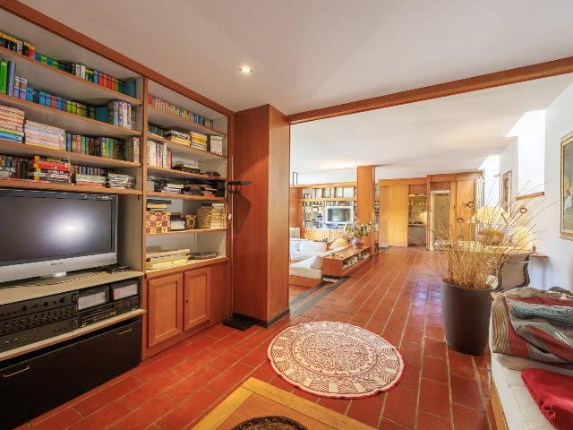 Pochi gradini conducono alla sala biliardo, collegata a dispensa e laboratorio, in prossimità di cantina, officina e garage di generose dimensioni. All'esterno, prima dell'ingresso, è stato realizzato un delizioso angolo solarium terrazzato.