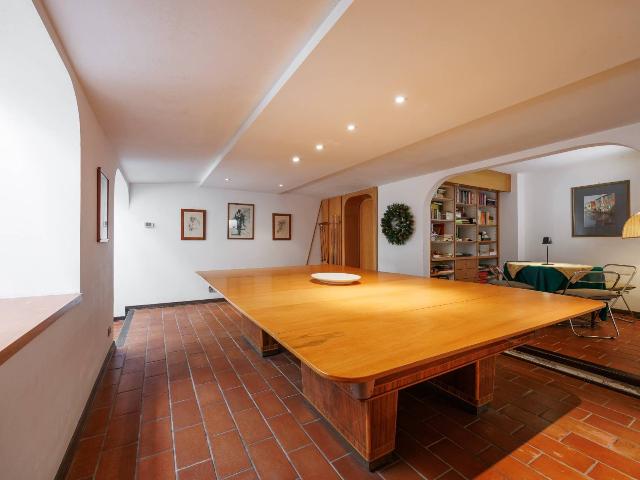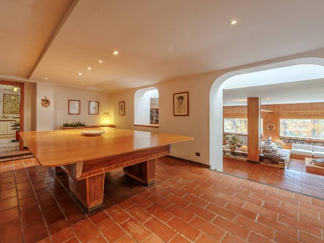 Pochi gradini conducono alla sala biliardo, collegata a dispensa e laboratorio, in prossimità di cantina, officina e garage di generose dimensioni. All'esterno, prima dell'ingresso, è stato realizzato un delizioso angolo solarium terrazzato.