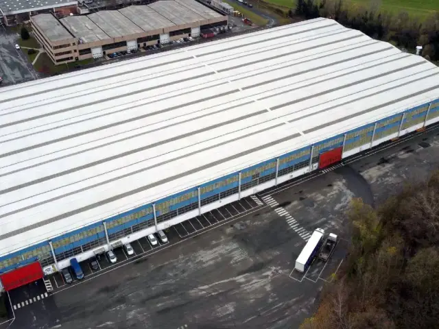 L'immobile in questione è un ampio capannone situato nella zona industriale di Alpignano, con una superficie coperta di mq. 20.640, e con un grande e spazioso piazzale di circa mq. 14.500, ottimo per la manovra dei bilici