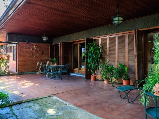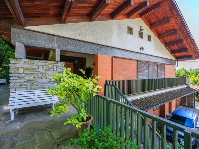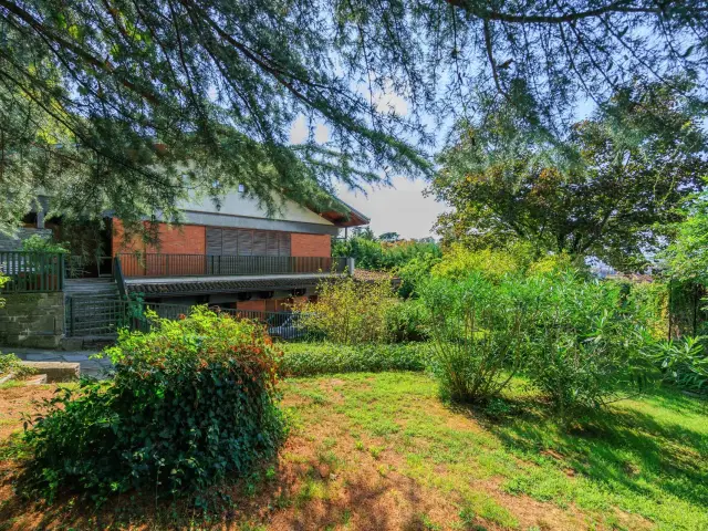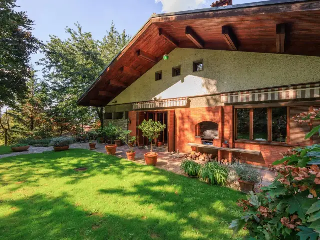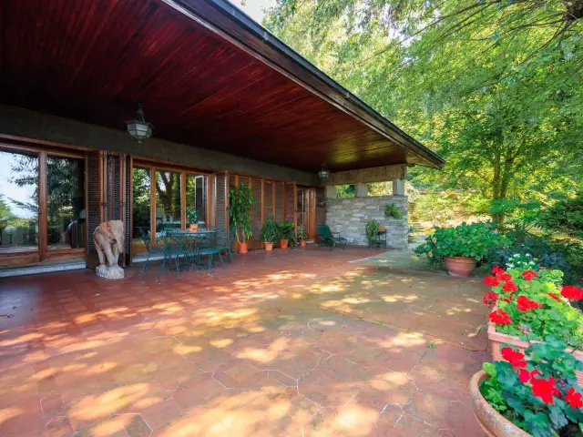 La villa è circondata da un giardino piantumato e curato, Il grande portico coperto e la terrazza panoramica creano un naturale prolungamento della zona giorno verso l'esterno.