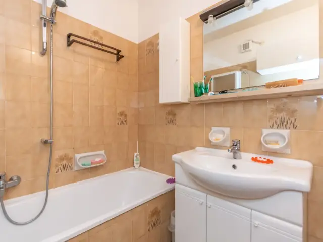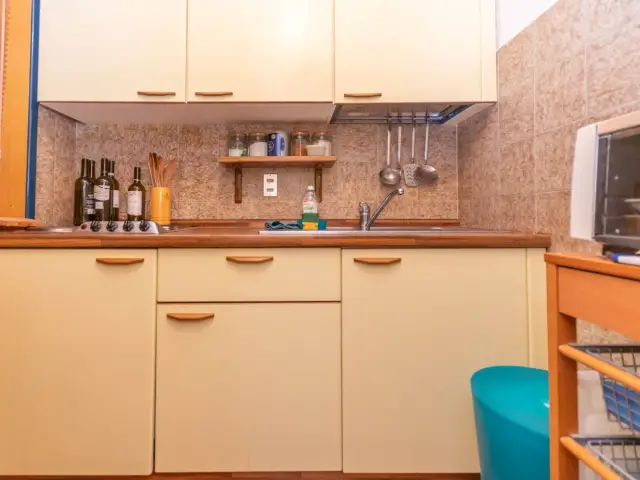 Entrando dalla porta trovi il bagno, subito sulla sinistra, che ti accoglie con la sua vasca pronta a coccolarti dopo una giornata intensa. Proseguendo lungo il corridoio troverai un comodo ripostiglio sempre sulla sinistra. La zona giorno si svela con un cucinino aperto e la zona pranzo e living con accesso diretto all'ampio terrazzo esposto a Sud dove potrai rilassarti e pranzare all'aperto nelle giornate d'estate.