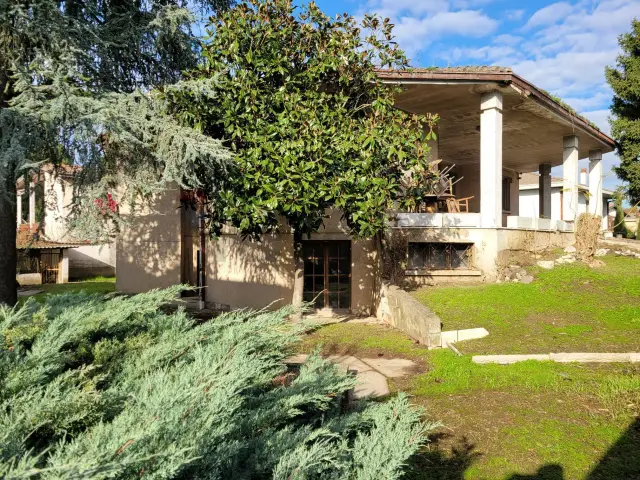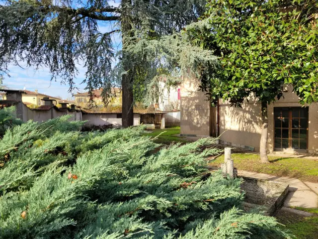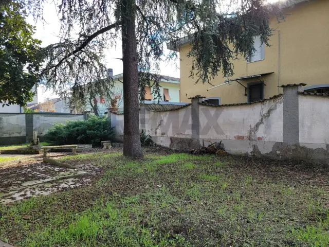 La villa, disposta su due livelli (piano terra e seminterrato), è circondata da un giardino di circa 550 mq piantumato su tutti i quattro lati, una vera oasi di privacy. L'accesso è caratterizzato da un vialetto privato, un tempo reso scenografico da due filari di alberi, che oggi, grazie a un recente intervento di apertura degli spazi, accoglie una splendida luce naturale, valorizzando l'intera facciata.