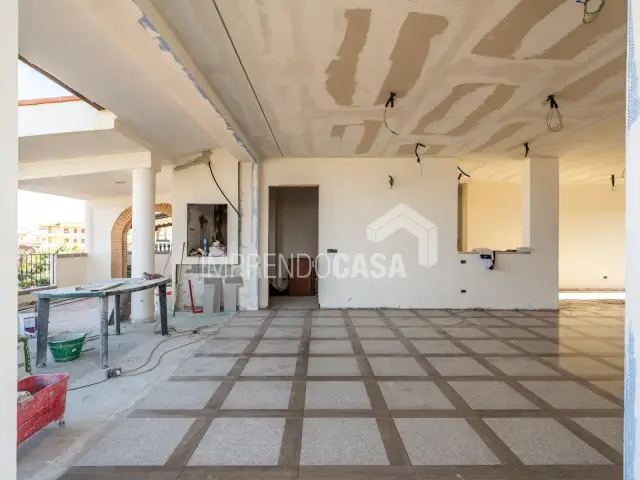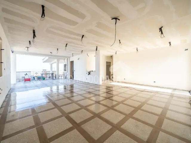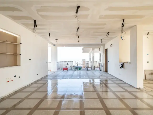 L’abitazione si presenta pari al nuovo, con elevate caratteristiche tecniche, funzionali e di comfort. Internamente è composta da ingresso su ampia area living con cucina, tre camere da letto, due servizi, due ripostigli, un Terrazzo di 65 mq e due balconi.