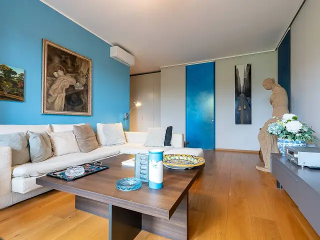 L'appartamento, di circa 106 mq. su tre arie, ristrutturato completamente nel 2018 con materiali di pregio, offre ambienti luminosi e armoniosi. L'ingresso conduce a un raffinato soggiorno living con ampi balconi panoramici e splendida vista sulle colline. La cucina abitabile, completa e inclusa nella vendita, è elegante e funzionale. La zona notte comprende due camere da letto e due ampi bagni. La proprietà viene venduta con armadio su misura e impianto di climatizzazione, pronta da vivere.