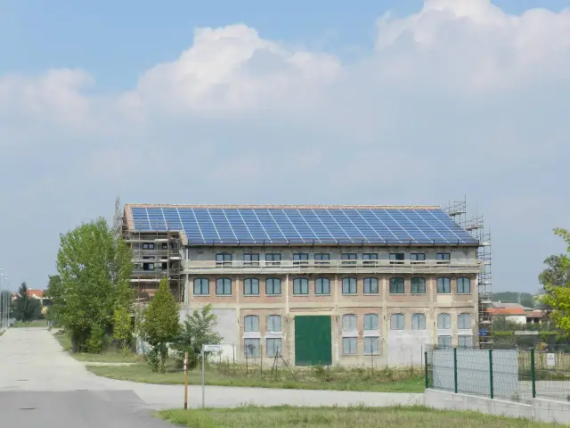 Il tetto è stato rifatto con isolamento e impianto fotovoltaico da 64 KW. E' stata effettuata la ristrutturazione parziale della struttura, compreso l'inserimento delle finestrature nuove in PVC.