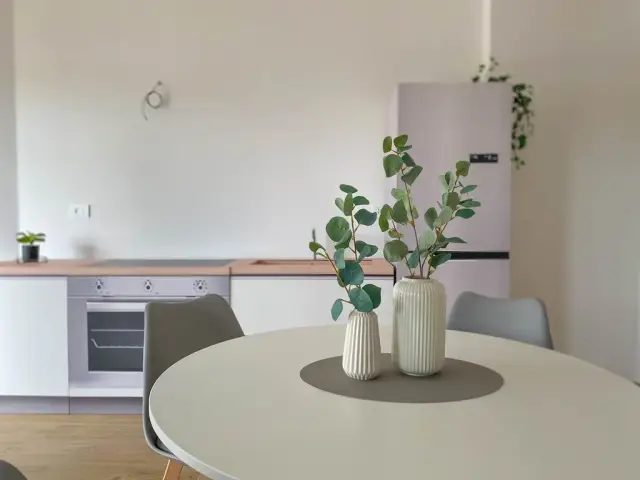 La zona notte si compone di due camere da letto, raccolte e funzionali, studiate per garantire comfort e privacy senza rinunciare alla praticità degli spazi. Il bagno finestrato con doccia presenta linee pulite e materiali contemporanei, in armonia con l’intero stile dell’abitazione.