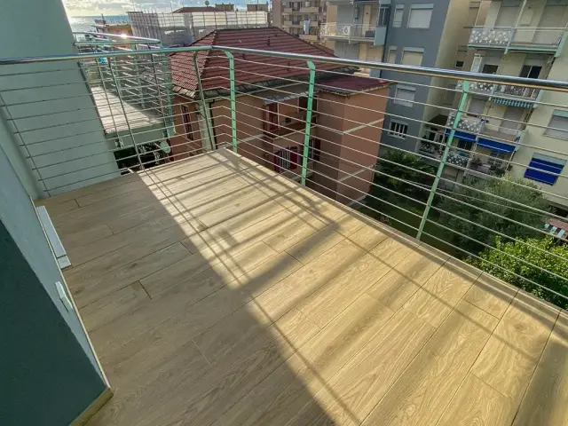 Due balconi vivibili completano il piano principale, offrendo sfoghi ideali per colazioni all’aperto, piccole zone relax o angoli verdi da personalizzare. Salendo al livello superiore si accede alla terrazza privata con vista mare, un luogo privilegiato dove il panorama diventa parte della quotidianità: perfetto per serate estive, cene a lume di candela o semplicemente per godere della brezza marina che caratterizza Loano.