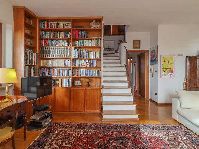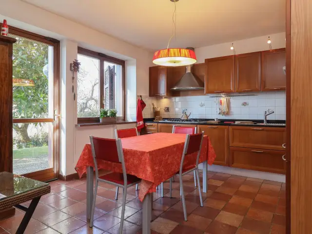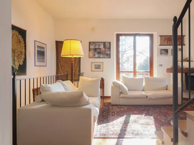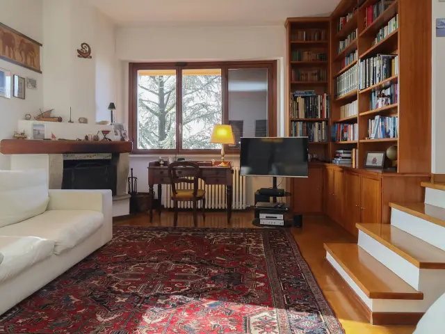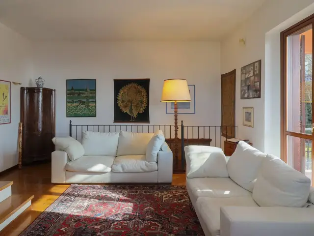 L'immobile si sviluppa su tre livelli: al piano terreno grande soggiorno con camino, cucina abitabile dalla quale si accede allo spazio esterno, bagno di cortesia, lavanderia, dispensa e locale tecnico. Una comoda scala, collega il piano superiore che ospita un'ampia zona salotto, anch'essa con camino, tv/studio e la zona notte con tre camere, di cui una con zona armadi e bagno privato ed un secondo bagno. La spaziosa mansarda, seppur non abitabile è molto godibile e si presta a diversi utilizzi.