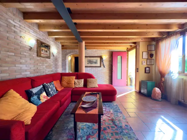 L'ingresso si apre su un accogliente e ampio soggiorno con pareti in mattoni faccia a vista, perfetto per i momenti di relax. La cucina abitabile è un vero gioiello di convivialità, spaziosa e dotata di un grande camino/focolare tradizionale. Completa il piano un pratico vano sottoscala/ripostiglio e un primo servizio.