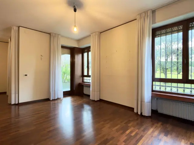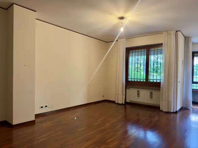 L'ingresso si apre su un grande salone, dove la zona living e l'area pranzo si fondono in un unico ambiente luminoso e raffinato. La cucina è abitabile, separata.