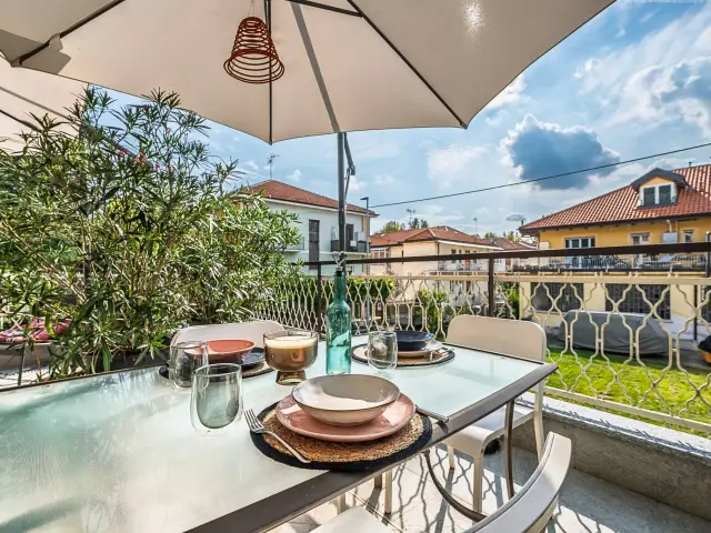 Vendesi a Moncalieri in Via Catullo angolo Viale del Castello, appartamento in villa bifamiliare con terrazzo e giardino condominiale.