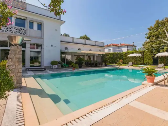 -Dependance Guest House & Private SPA: Adiacente alla villa, un'ala di nuova concezione ospita una lussuosa dependance. Questo volume architettonico comprende un appartamento indipendente per gli ospiti, un'esclusiva Area Wellness/SPA completa di Solarium, Sauna, bagno turco e doccia emozionale, un'area esterna con piscina a sfioro, recentemente ristrutturata con nuovi sistemi di impermeabilizzazione e un raffinato rivestimento in gres.